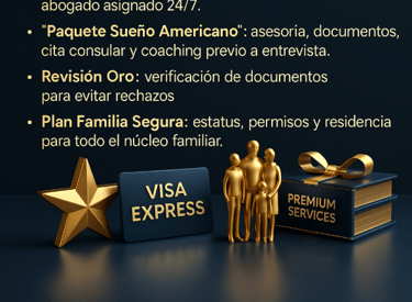 “Paquete Sueño Americano”: asesoría, documentos, cita consular y coaching previo a entrevista.
